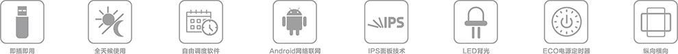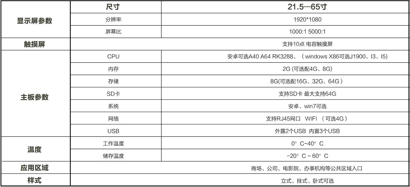 超薄機身;質(zhì)感拉絲金屬;高清畫質(zhì);觸摸極速反應;智能分屏;智能遠程信息發(fā)布;可定時開關(guān)機;提前設(shè)定節(jié)目源;鋼化玻璃屏幕;可定制專屬LOGO、多種顏色、尺寸可選。