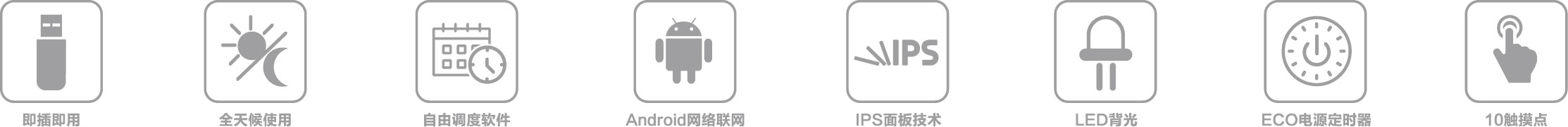 超薄機身;質(zhì)感拉絲金屬;高清畫質(zhì);觸摸極速反應;智能分屏;智能遠程信息發(fā)布;可定時開關(guān)機;提前設(shè)定節(jié)目源;鋼化玻璃屏幕;可定制專屬LOGO、多種顏色、尺寸可選。